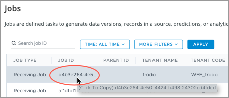 To search for a Job ID, click the Job ID to copy the ID to the clipboard and then paste it into the Search Jobs field, as shown next.