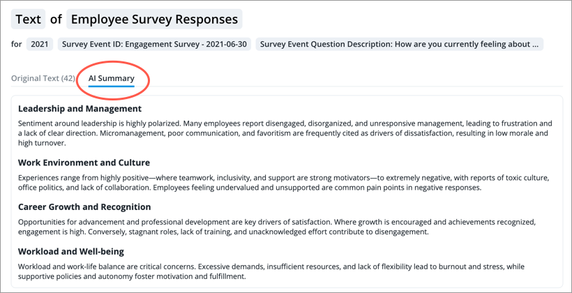 - Users who do not have the AI Text Summary and Enable AI Explanation permission capabilities will see the original text instead of the summary.