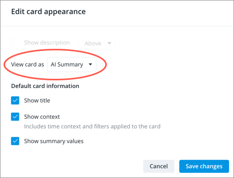 In the Edit card appearance dialog, in the View card as list, select AI Summary.