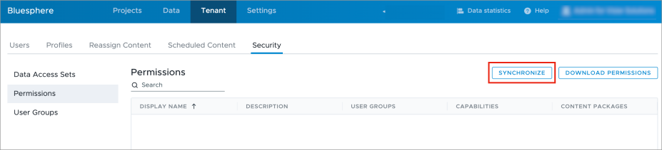 - Click Synchronize. Refresh your browser to view the synchronized security artifacts in the list.